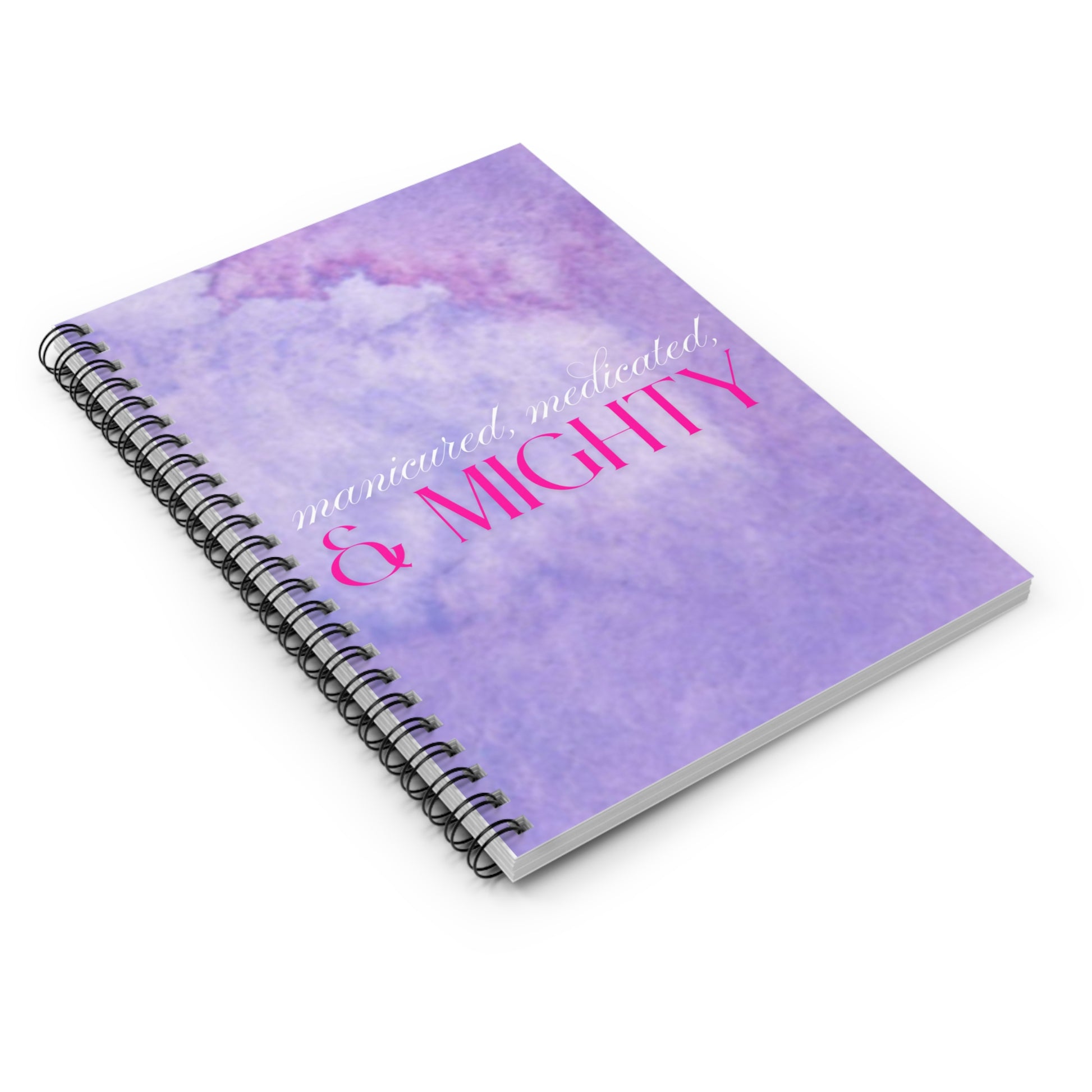 Strong, stylish, and self-aware. This spiral notebook with the phrase “Manicured, Medicated, and Mighty” celebrates women who balance it all and thrive.