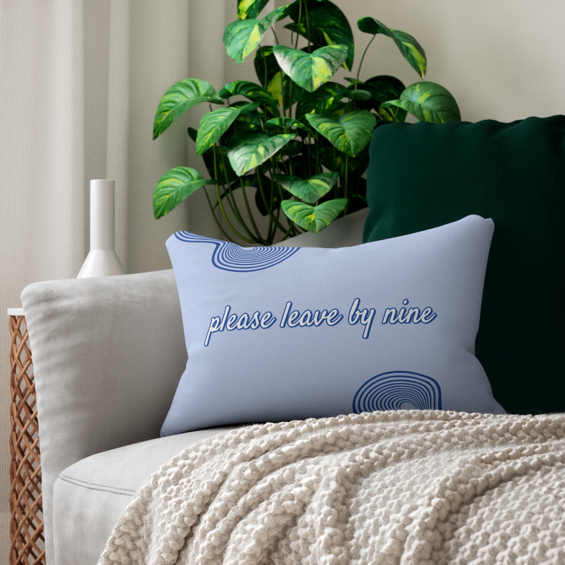 Tired of those friends who interpret "dropping by" as "moving in"? Our bestselling "Please Leave By Nine" decorative throw pillow communicates what you're too polite to say out loud.