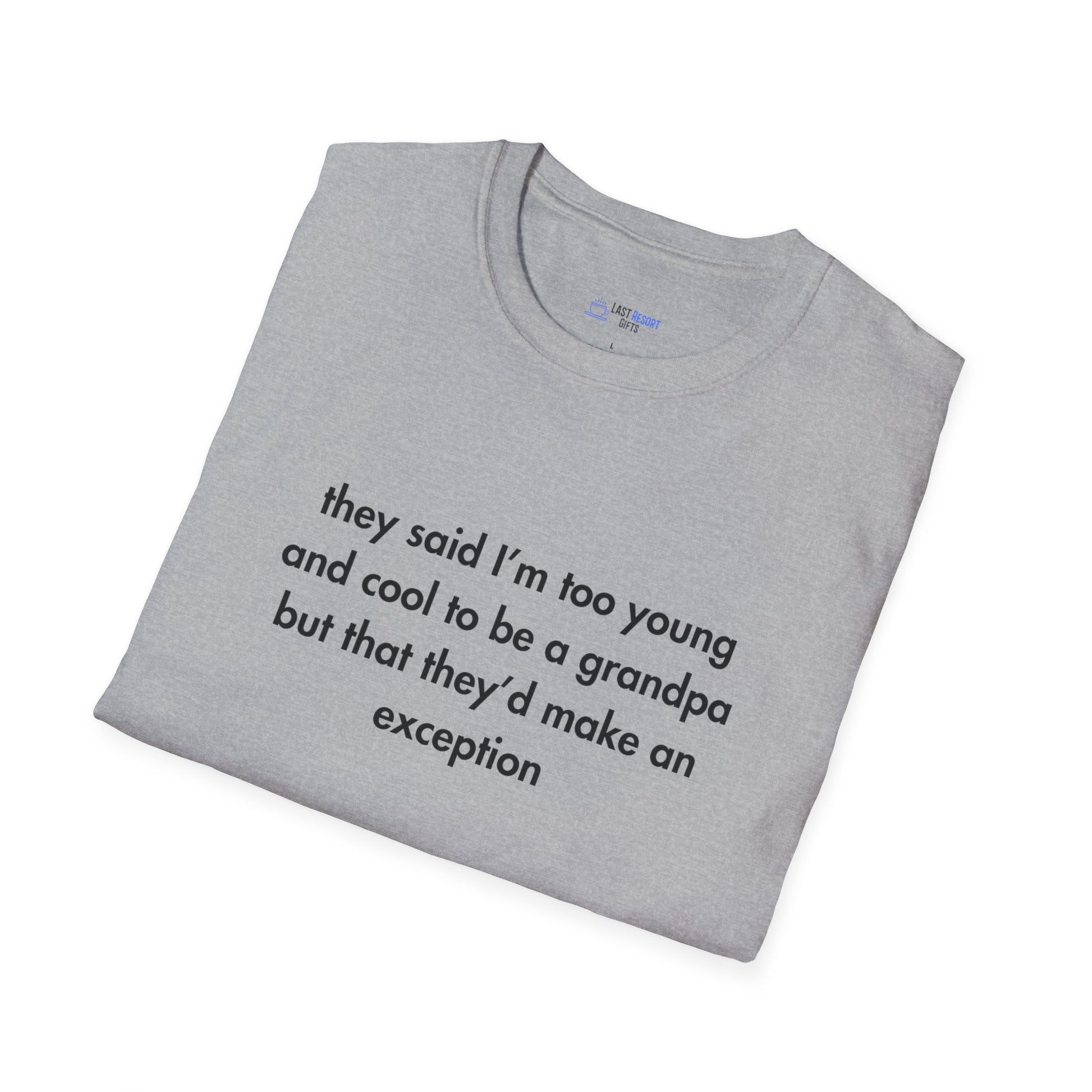 Too Young & Cool to Be a Grandpa T-Shirt – Funny Graphic Tee for Grandzaddies